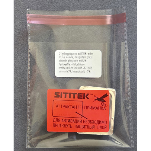 SITITEK attractant is environmental-friendly and effective lure of Russian origin and production. It increases the effectiveness of mosquito killing machines by 3-4 times. The attractant is compatible with Mosquito MV-01, V-16, KRN-5000, MSK-01, Angara, GRAD Black G1 and GRAD Black G2 mosquito killing machines.