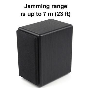 You can turn the jammer on and off inconspicuously for others using a remote control. Remote control action range is 10 m (33 ft) |