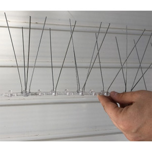Effectively deter both large and small sized birds Spike bird deterrents consist of separate sections. The length of one section is 50 sm. On every section there are 30 spikes of 10 sm height placed in three rows. Some of the spikes are placed strictly vertically, and the others are directed to different sides. Such a construction makes bird landing (almost all species of birds that live in settlements) physically impossible. This is a humane way of bird deterrence, where there is no harm to them. |